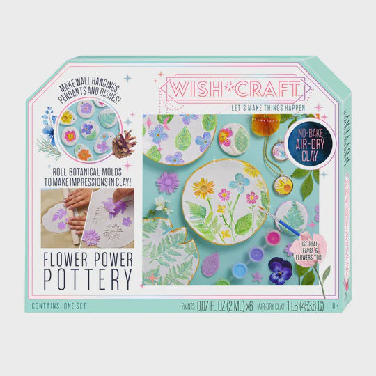 Roll the included botanical stamps or real leaves and flowers into air-dry clay. When dry, paint the flower impressions with pretty colors, metallic gold and glaze for a beautiful finish. Make ceramic jewelry pendants, trinket dishes and more! Kit is jam packed with 1 lb of air-dry clay, a wooden rolling pin, 7 botanical stamps, stencil, 6 paints, glaze, paintbrush, 4 jewelry pendants and clasps, bowl template, rod for wall art and gold floss. You will be amazed at how easy it is to make beautiful pottery!