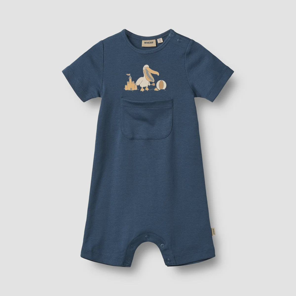 Wheat's playsuits for babies are both cute and comfortable. The playsuit has press buttons at the shoulder as well as along the inseam, which makes it easier for you to dress your baby. The playsuit can be worn on its own or with a body and leggings underneath on colder days.